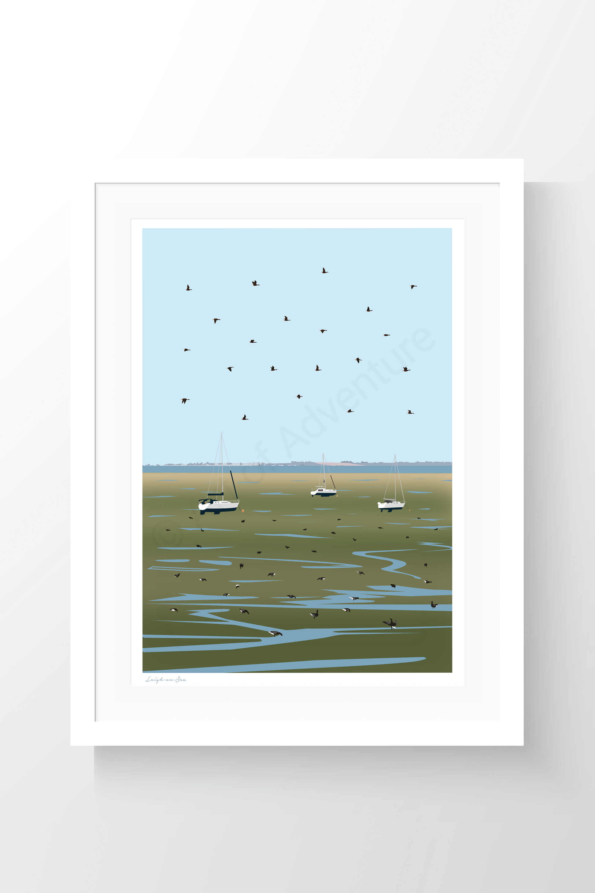 Capturing nature's remarkable journey as thousands of Brent Geese arrive each autumn, transforming the Thames Estuary mud flats. This striking print celebrates one of Essex's best seasonal natural events directly into your home.